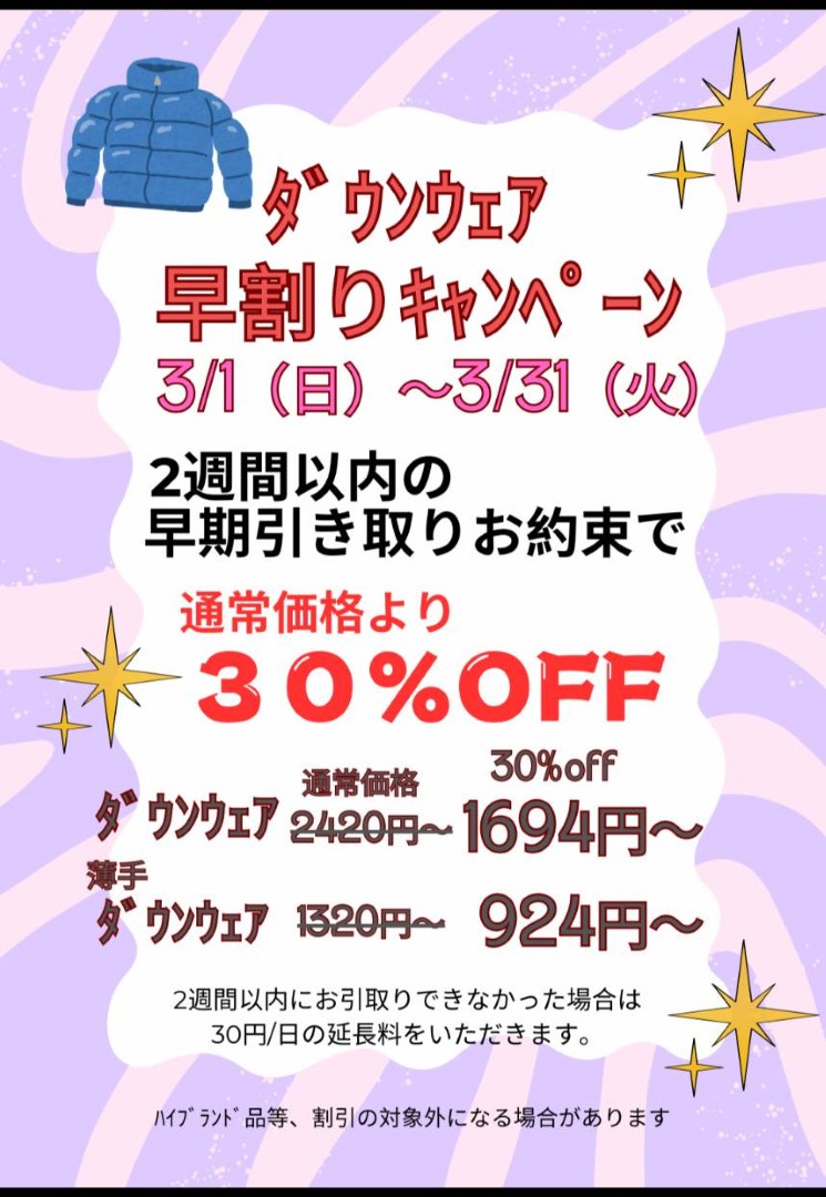 『ダウン早割キャンペーン』セール!