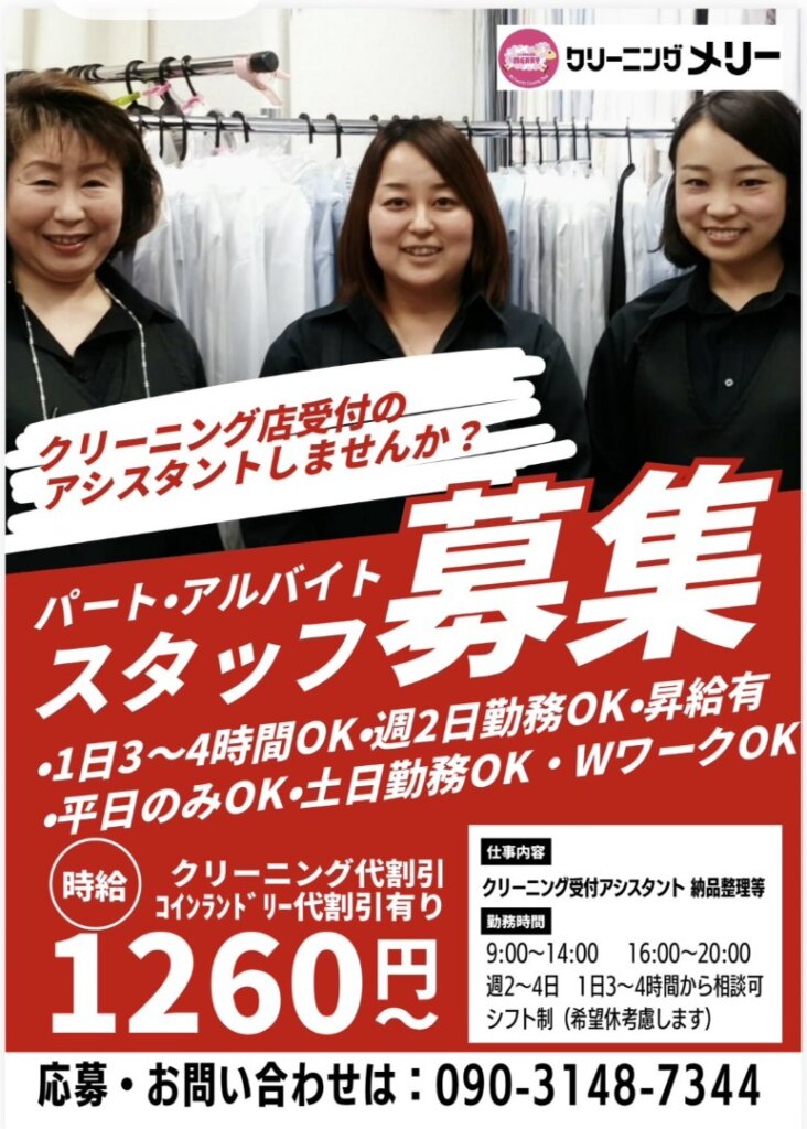 お店で分からないことがあればクリーニングメリーの営業時間中はメリースタッフが、しっかりサポートいたしますので初めての方でも安心してご利用いただけます!