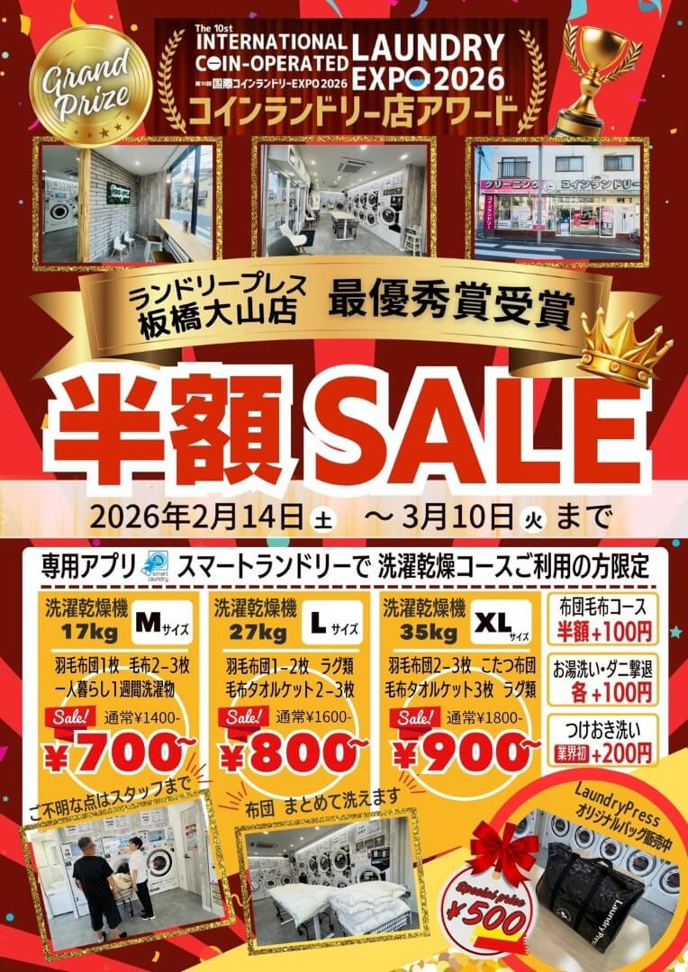コインランドリー店アワード『最優秀賞受賞記念』半額SALE開催中!