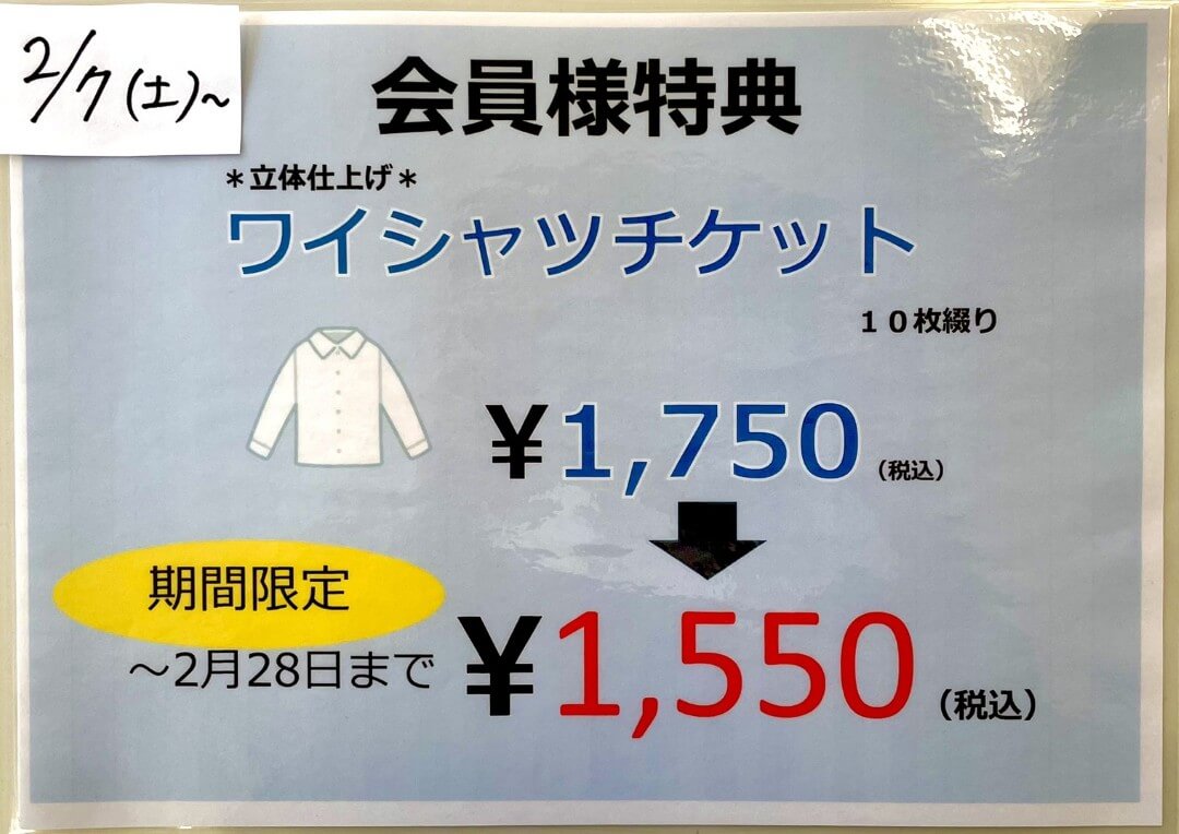 『ワイシャツ回数券』販売開始します!