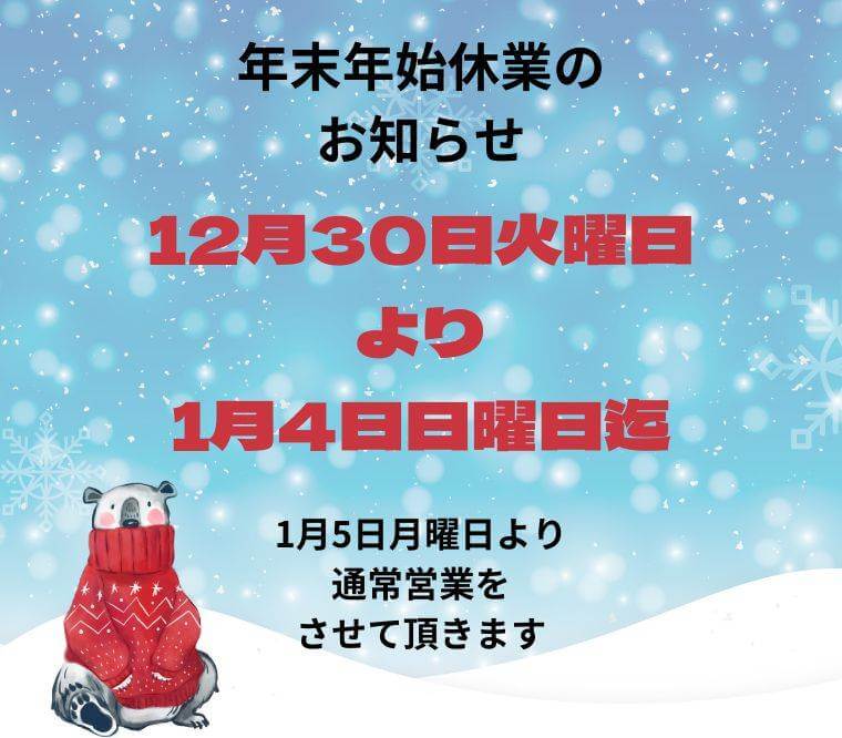 年末年始休業のお知らせ