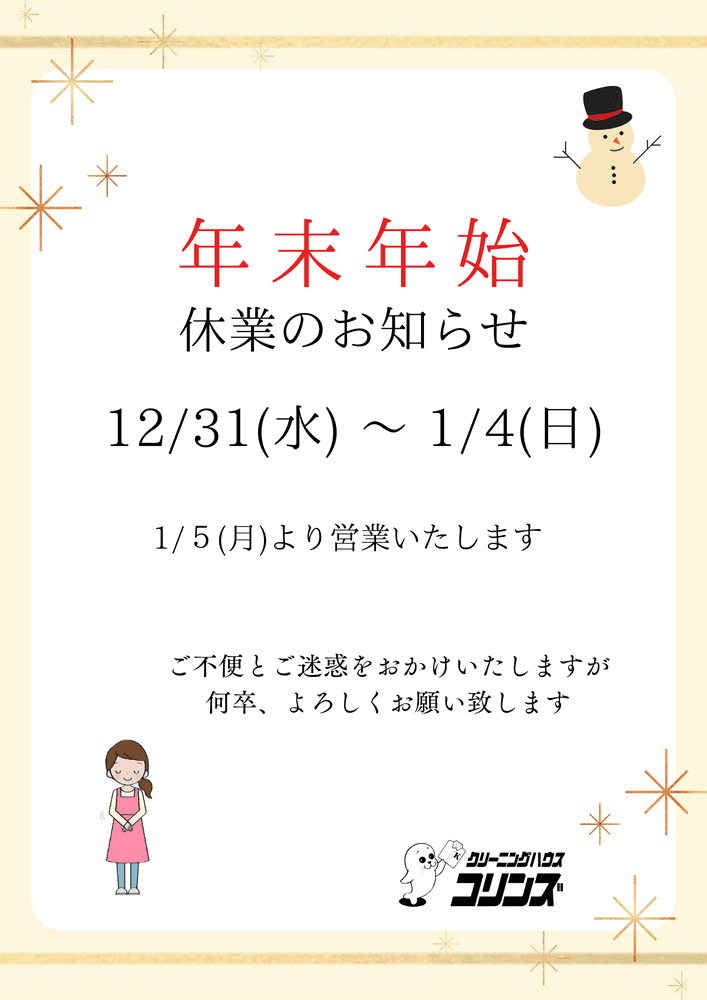 新年のクリーニングにぜひご利用下さいませ!