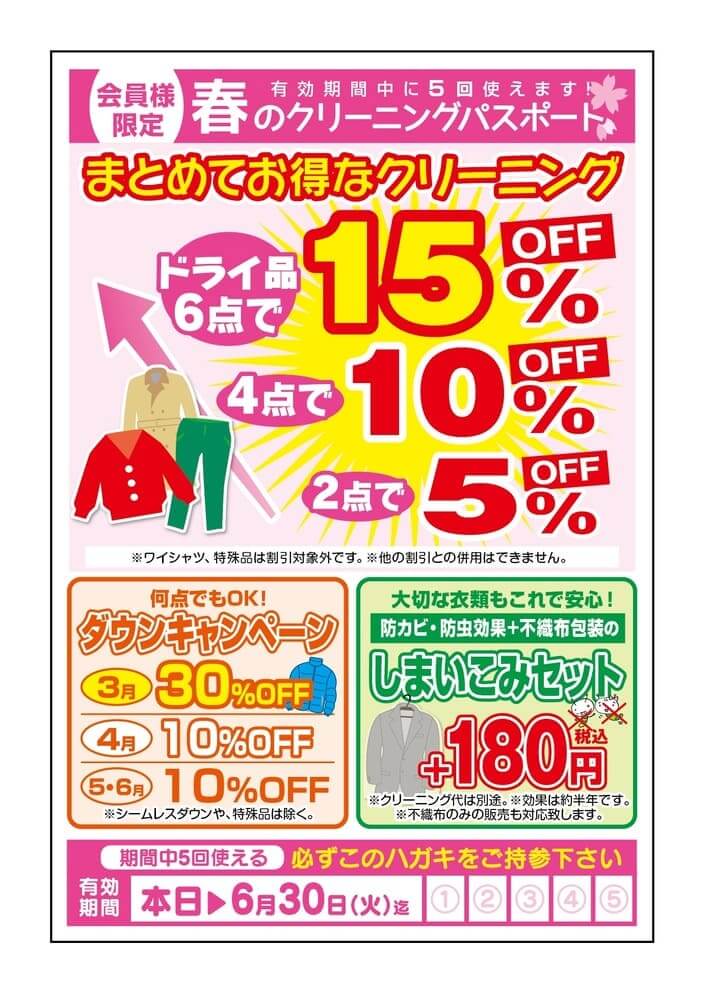 とってもお得な『春のクリーニングパスポート』を店頭にてお渡ししております!