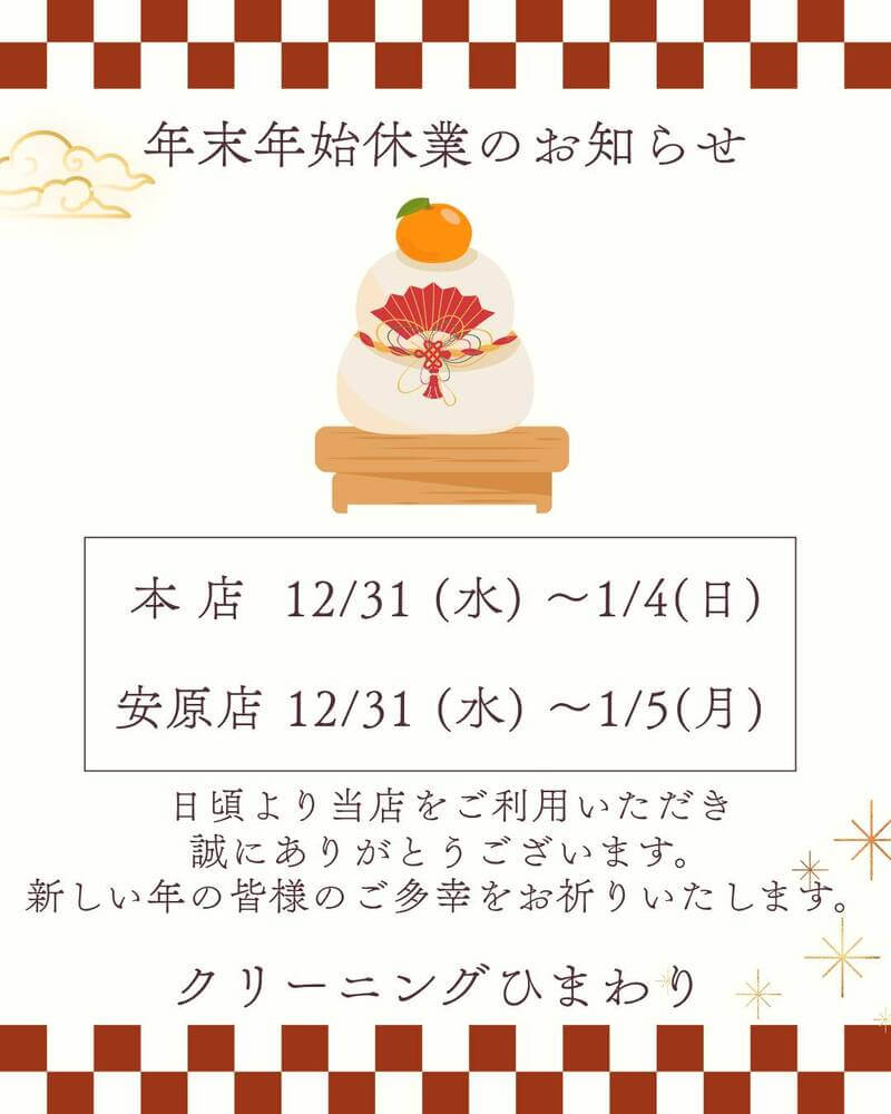 年末年始休業のお知らせ