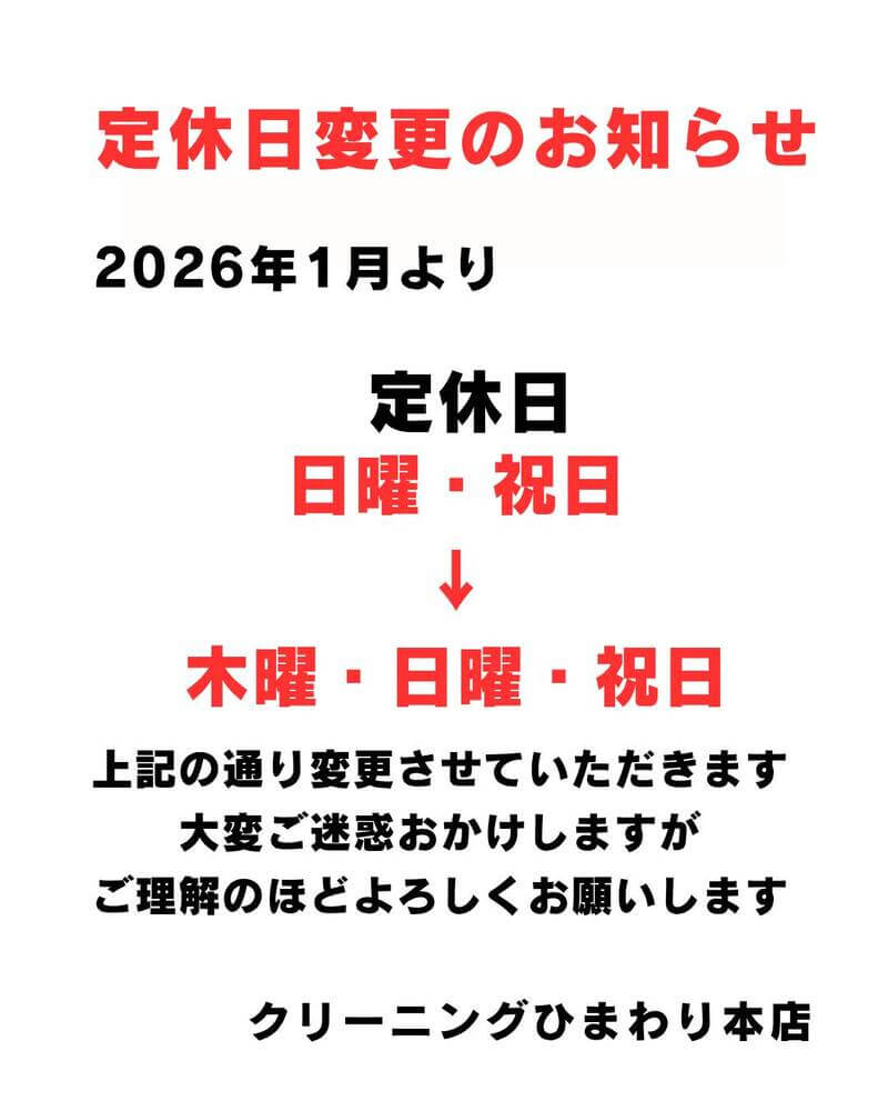 【本店】定休日変更のお知らせ