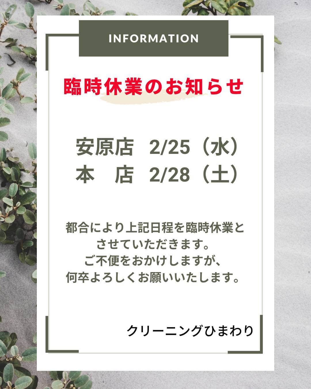 臨時休業のお知らせ