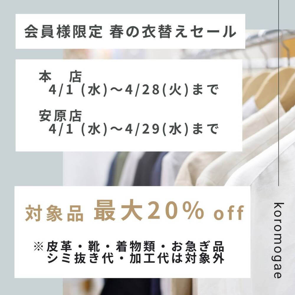 ※皮革・靴・着物・お急ぎ品・加工代・店販品は対象外です