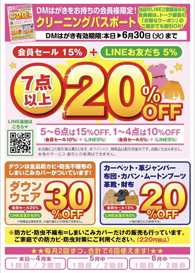 期間中は合計『6回』使えますので、衣替えのクリーニング等にご利用下さい!