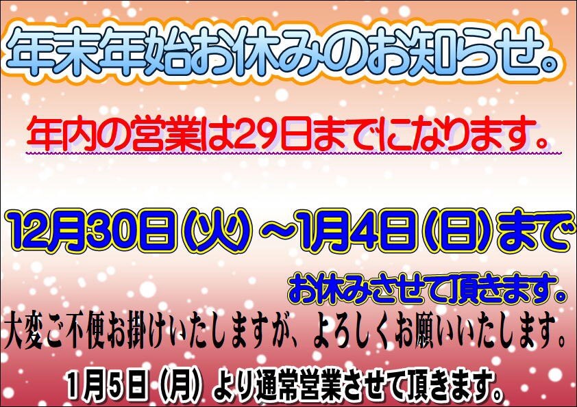 営業時間等に変更がある場合には、随時メール、ホームページ、店頭にてお知らせ致します。