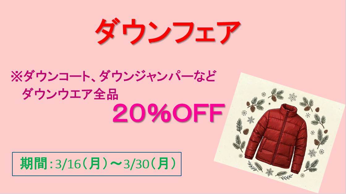 ダウンフェア開催中!