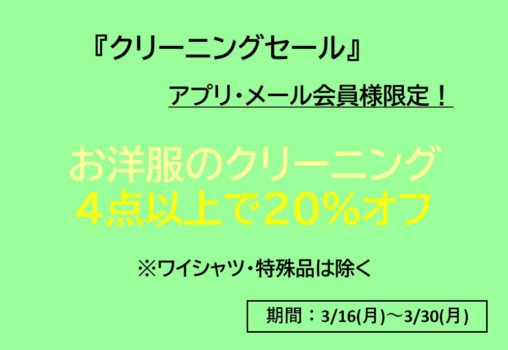 【アプリ・メール会員限定】『クリーニングセール』!