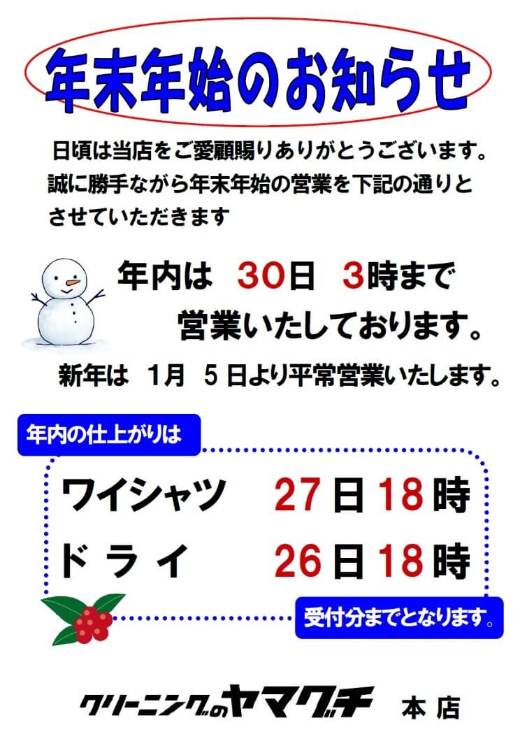 年末年始休業のお知らせ